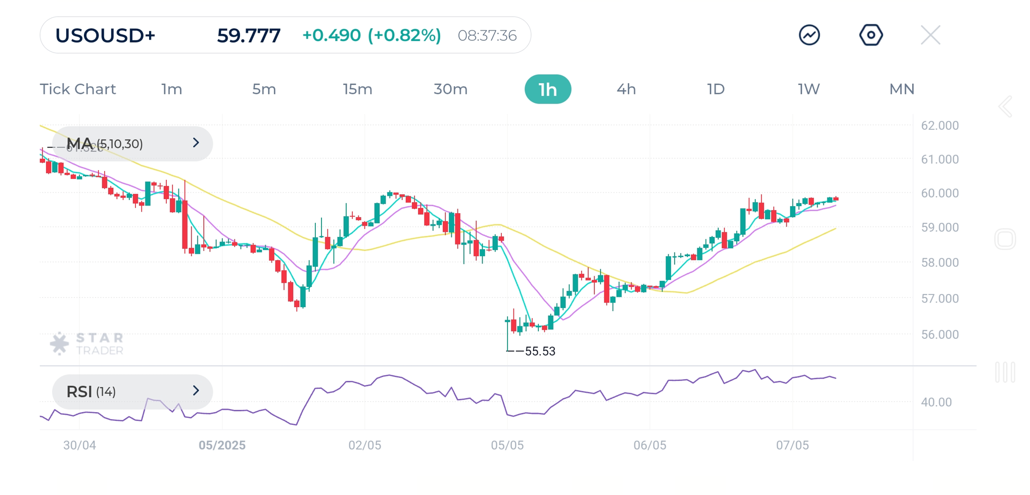 WTI (USOUSD) 1H Chart