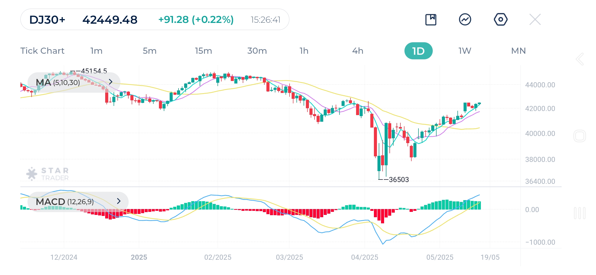 U.S. Stock indices are recovering from April’s lows. The Dow Jones rose 1.88% percent this week and will be facing the resistance level of 42,889