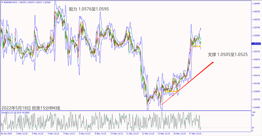 昨天(17日)澳州联储会议纪要表示需要进一步提高利率,带动澳美上涨约40个点。英国公布失业数据和欧元区公布第一季度GDP利好,带动欧美和镑美皆涨逾120个点,造成美元指数大跌近百点。晚间美国公布经济数据好坏参半,但是在美联储布拉德对加息50个基点表示乐观,美元指数止跌反弹至103.40附近整理,带动美日和美加拉升约40个点,也让澳美和纽美皆下跌超30个点。